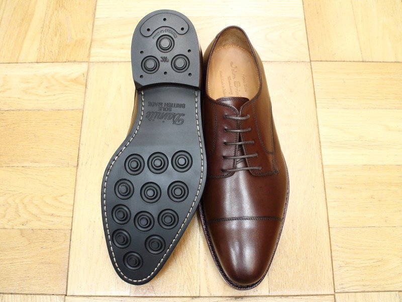 ジャランスリウァヤのドレスシューズ#98782外羽根キャップトゥのミッドブラウン。雨天時に強いダイナイトソールモデルです。ソールの張り替えが可能。
