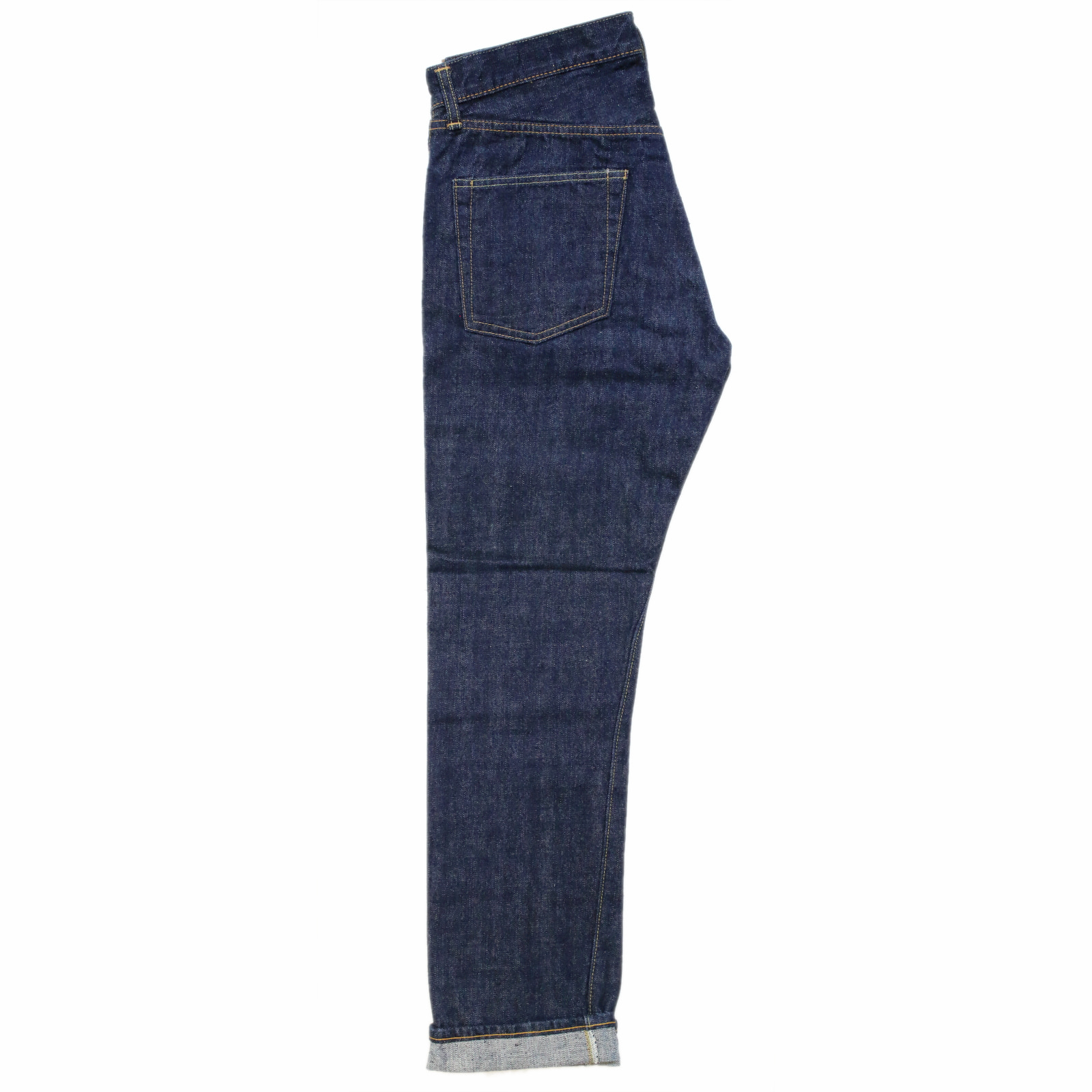 オアスロウ定番のスリムフィットジーンズ「107」。古い織機で生産した履き心地の柔らかい13.7ozデニム。キレイめに履けるワンウォッシュモデルです。